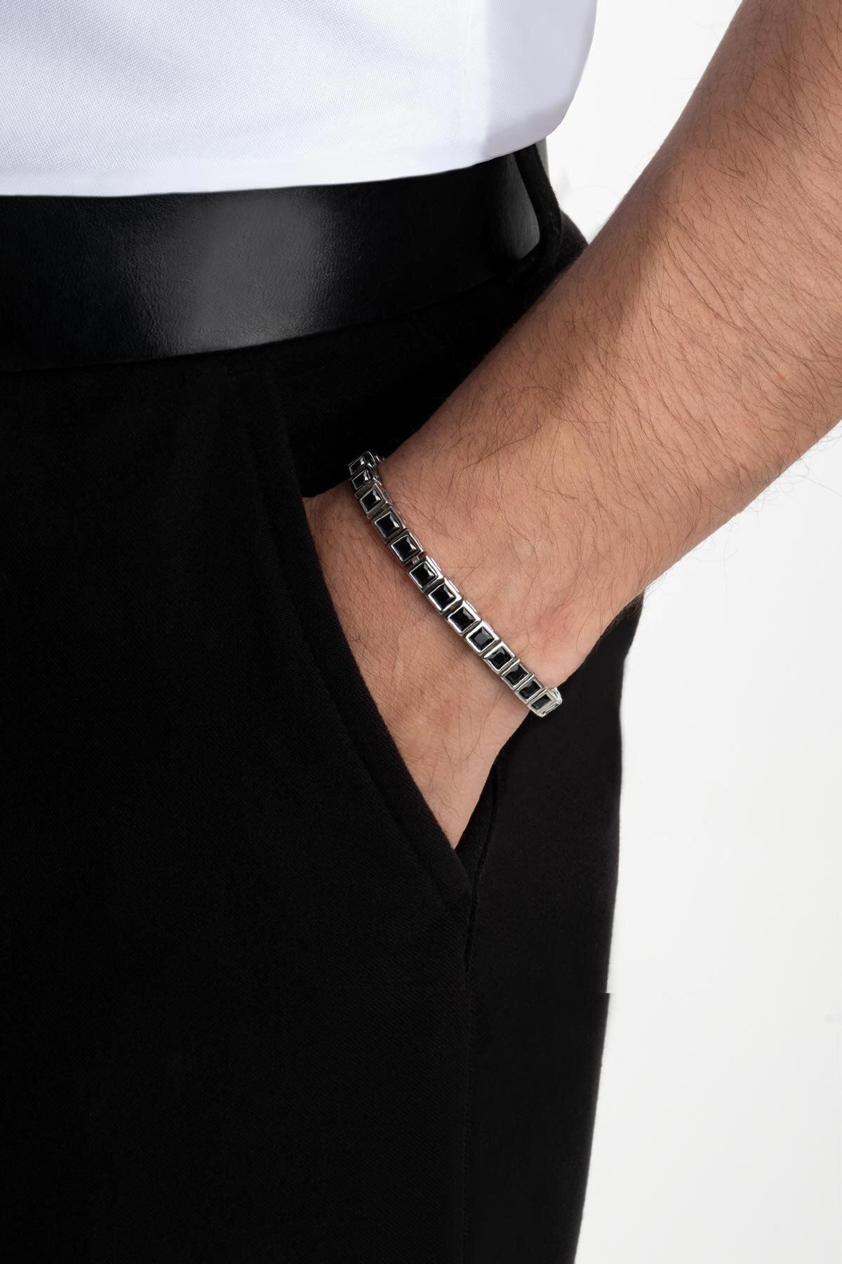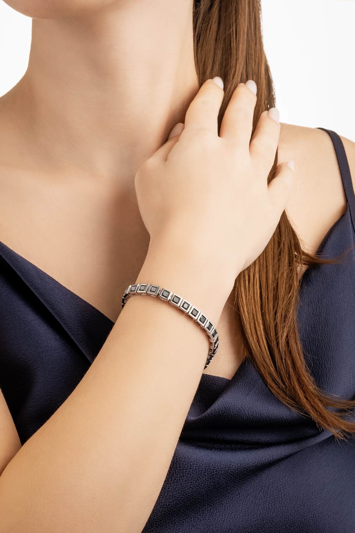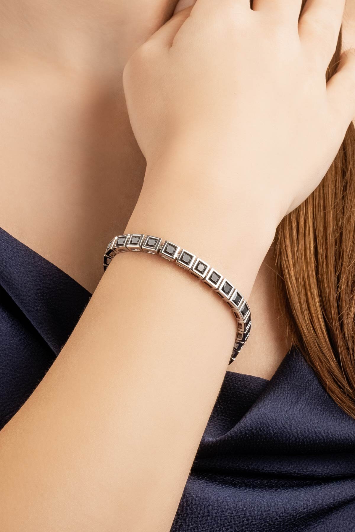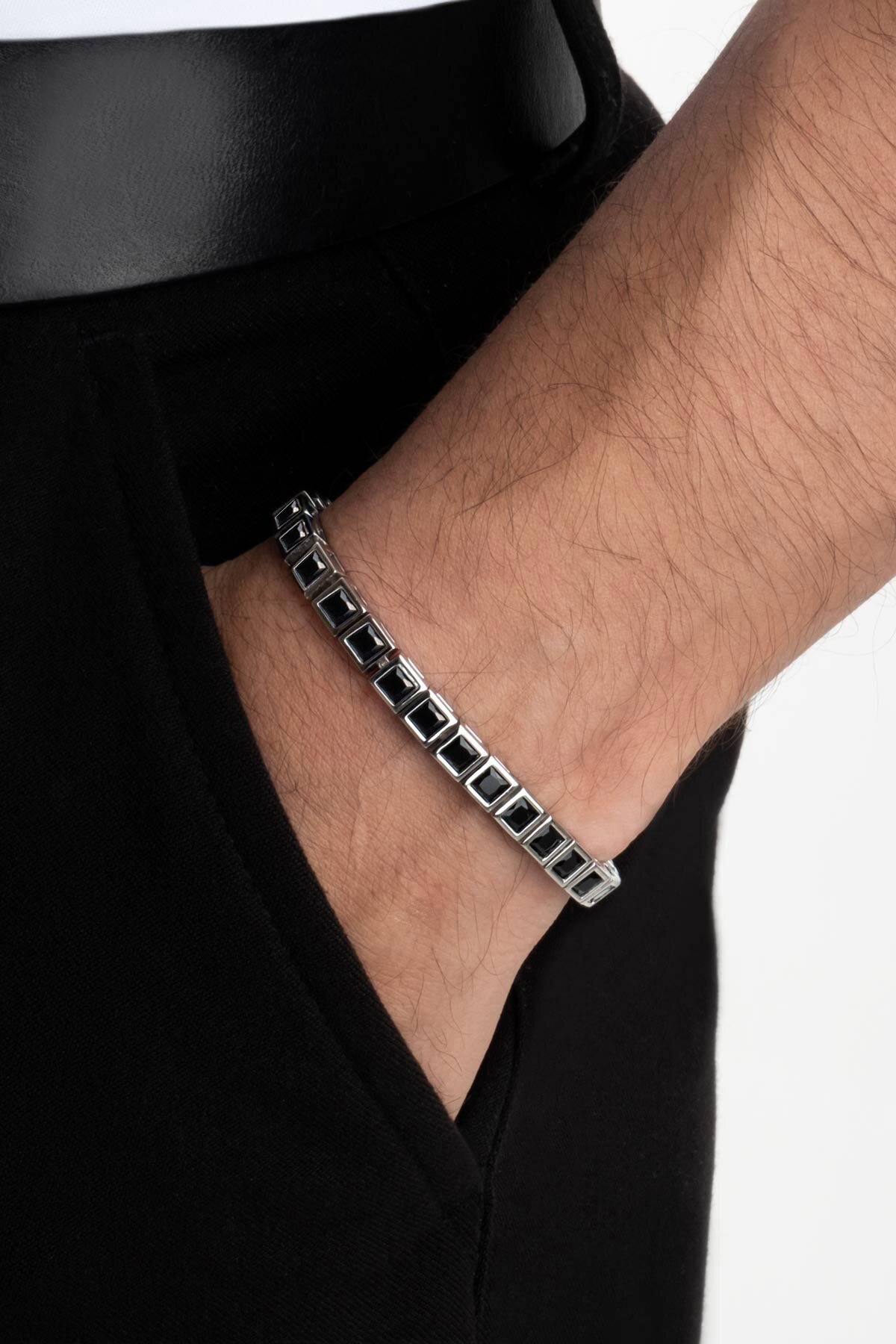 Siyah Ve Beyaz Taşlı Beyaz Altın Kaplama