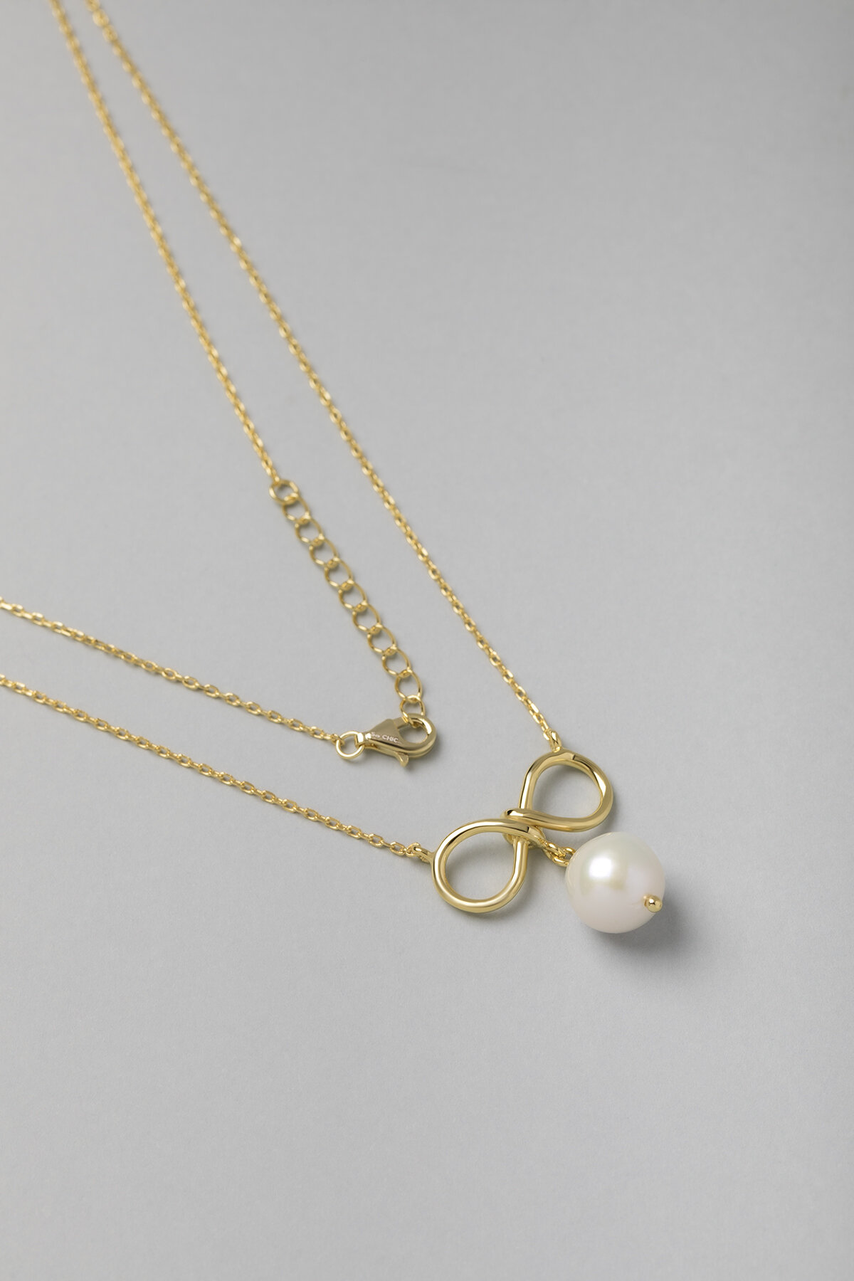 Sonsuzluğun İncisi 18 Ayar Sarı Altın Kaplama 44 Cm Gümüş Kolye