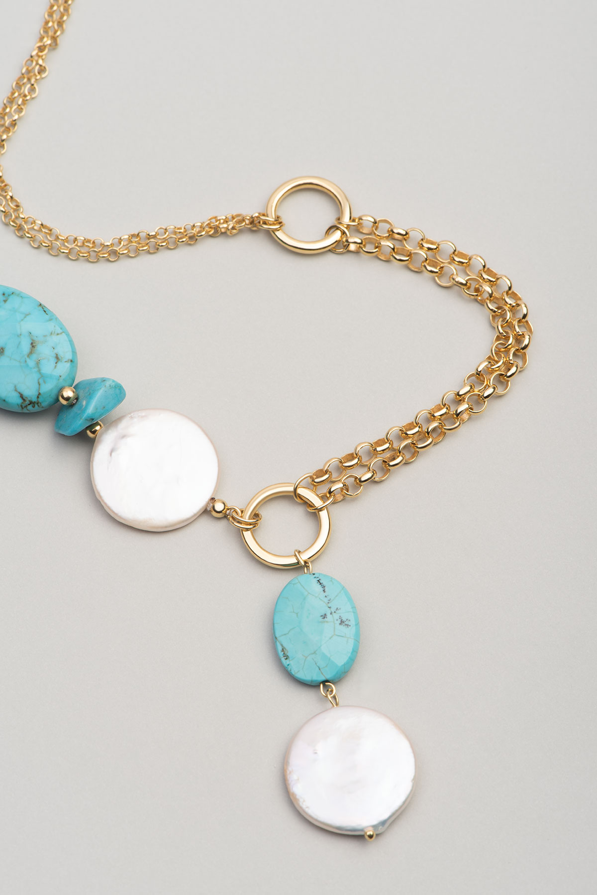 Turkuaz İhtişamı 18 Ayar Sarı Altın Kaplama 50 Cm Gümüş Kolye