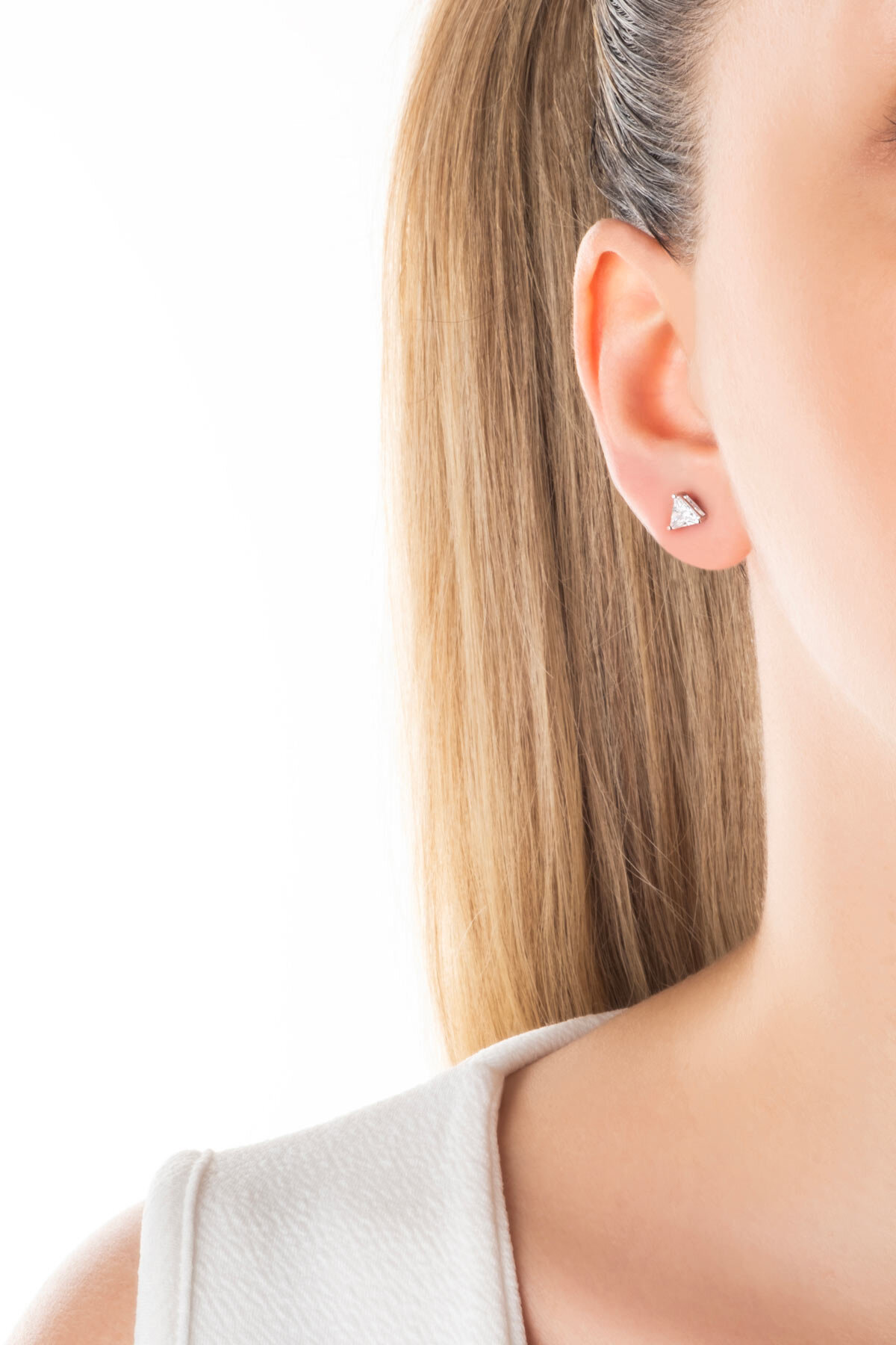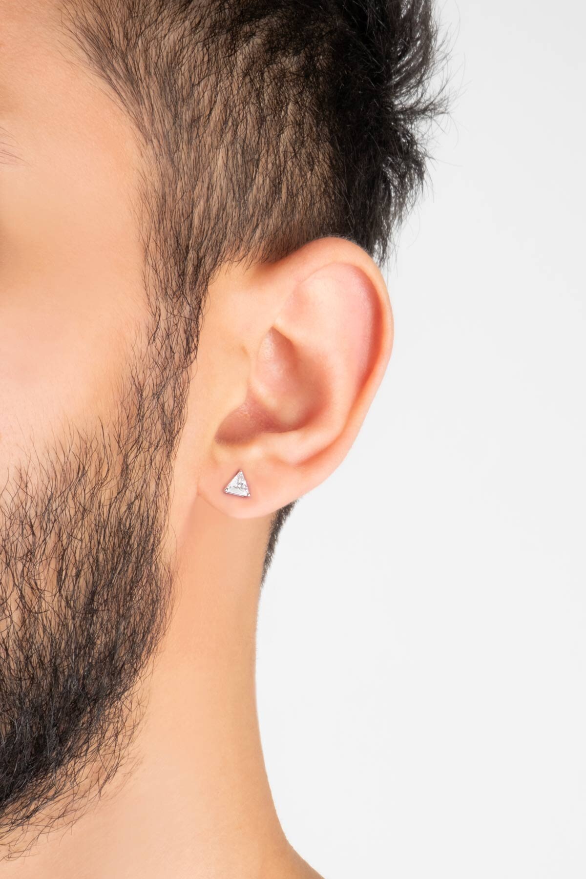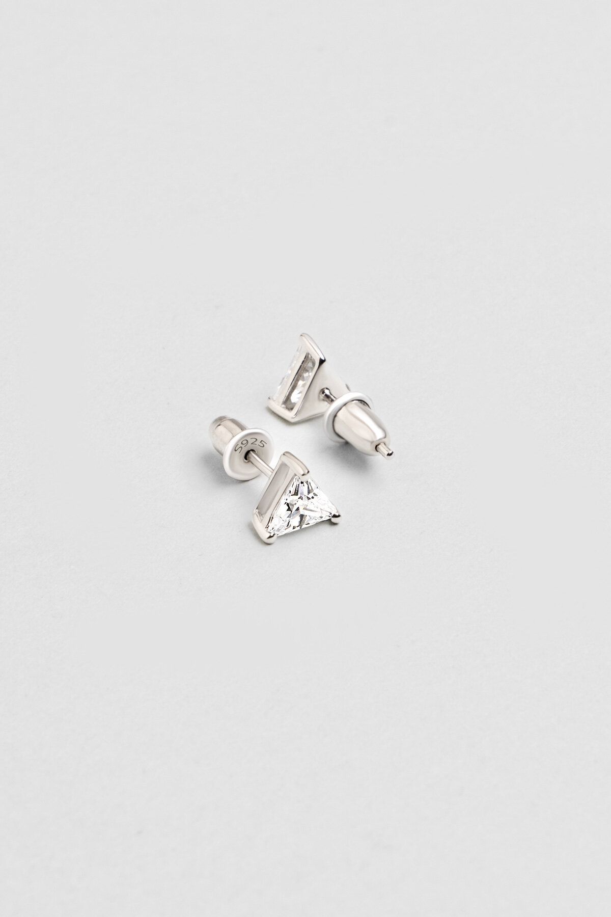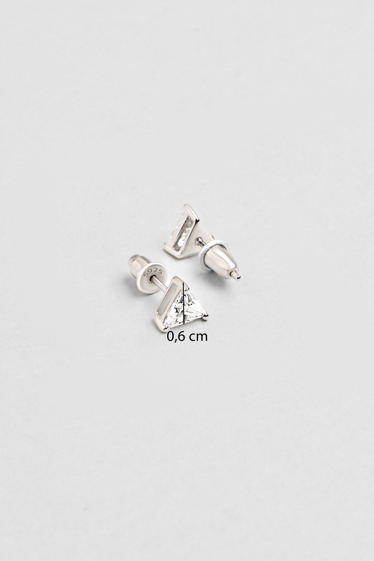 Üçgen Tektaş 18 Ayar Beyaz Altın Kaplama Gümüş Küpe