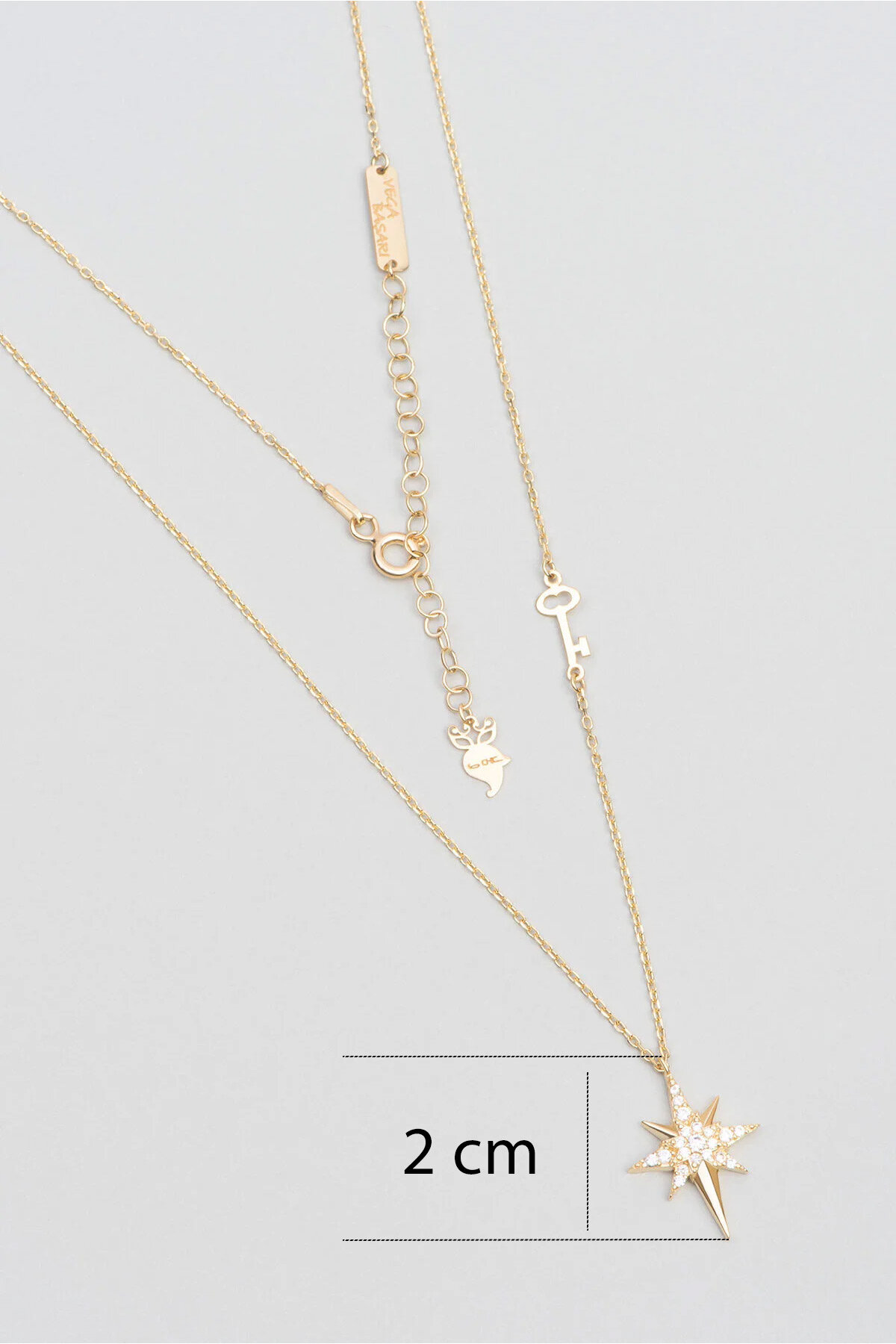 Vega Başarı Yıldızı 18 Ayar Sarı Altın Kaplama 48 Cm Gümüş Kolye