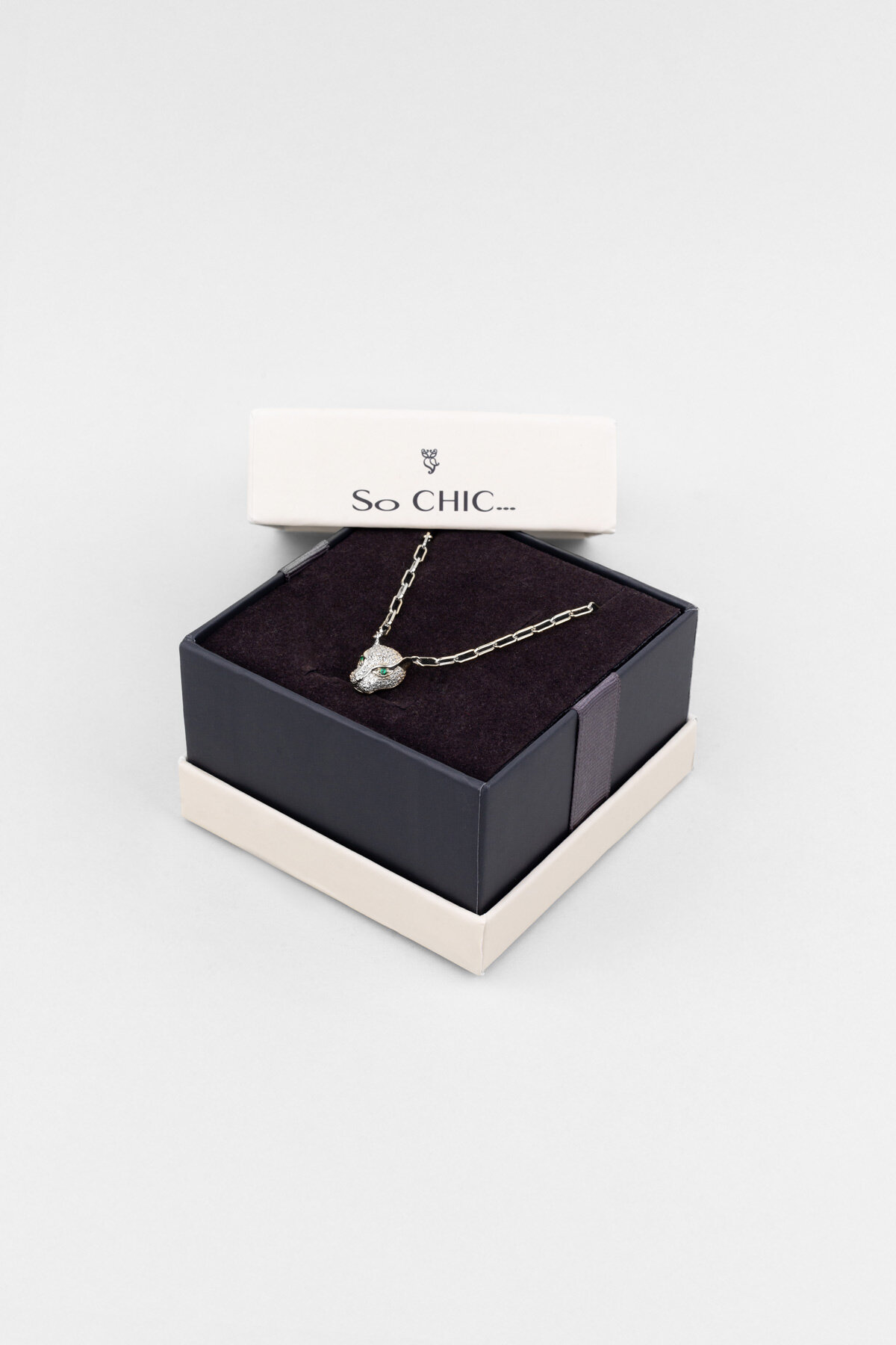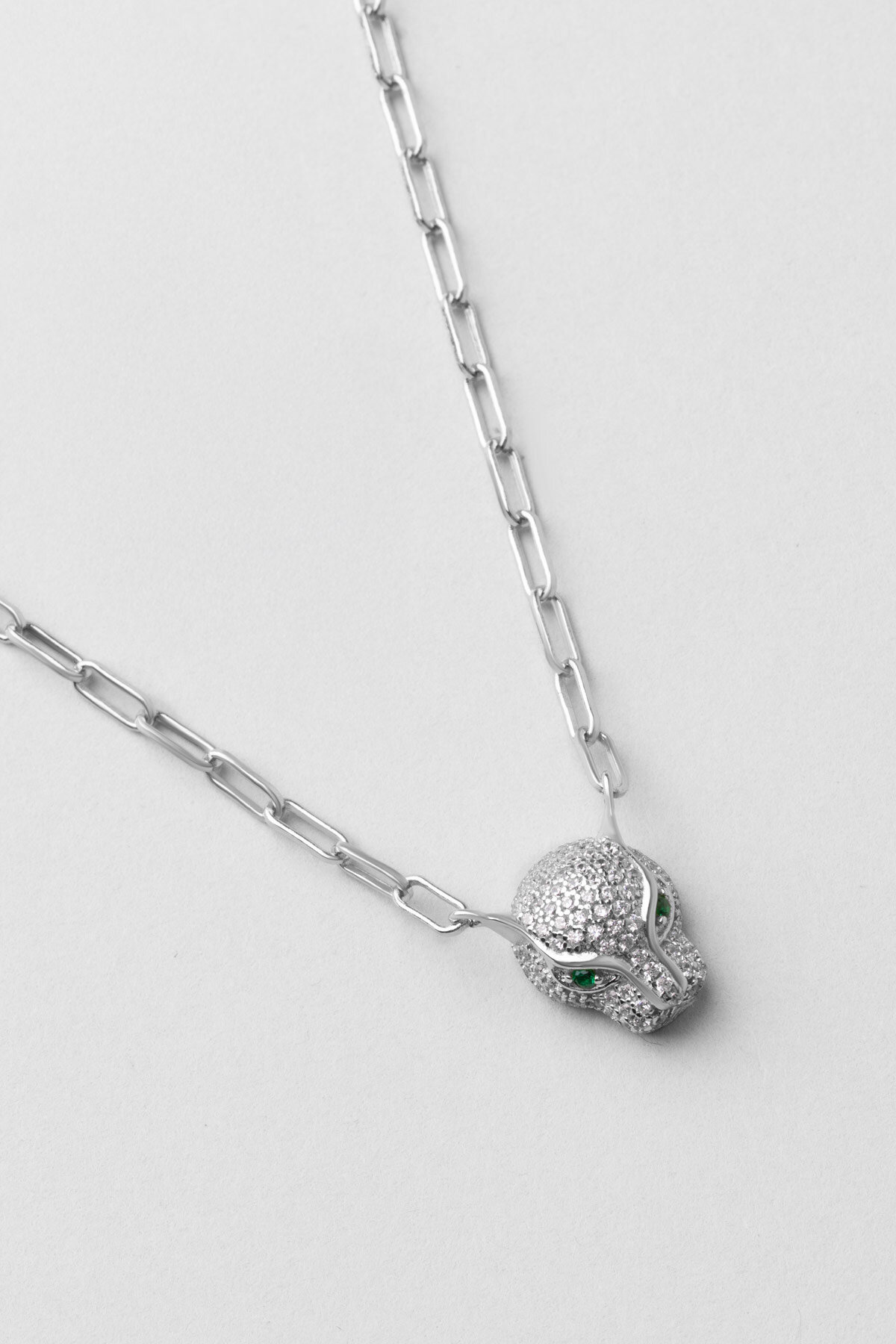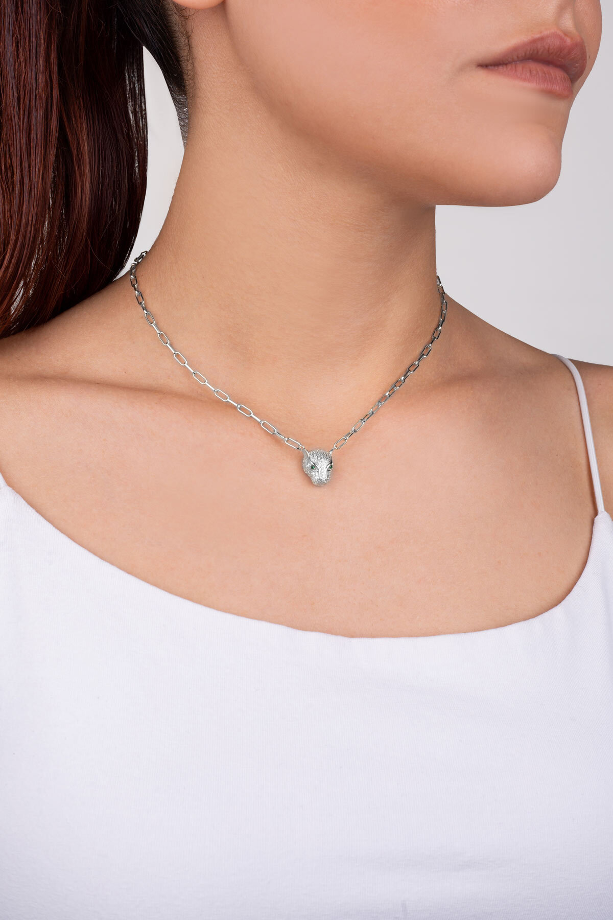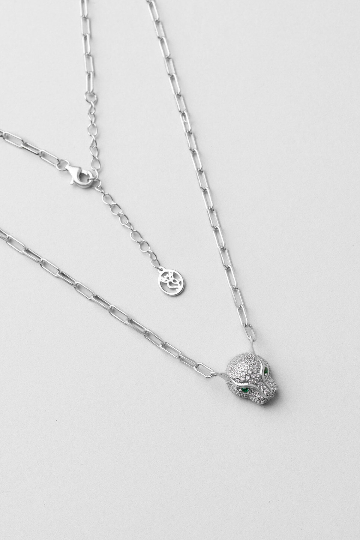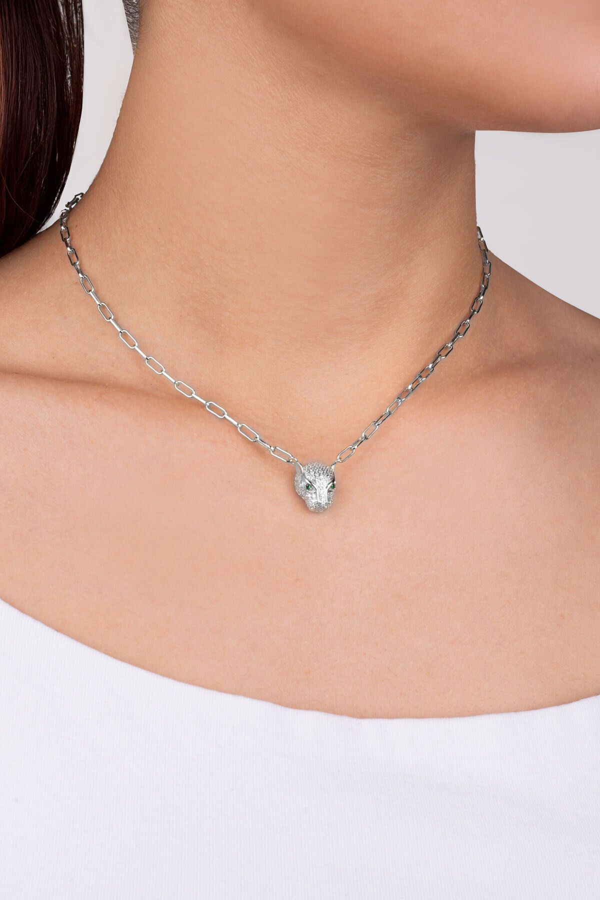 Yeşil Gözlü Kaplan 18 Ayar Beyaz Altın Kaplama 43 Cm Gümüş Kolye