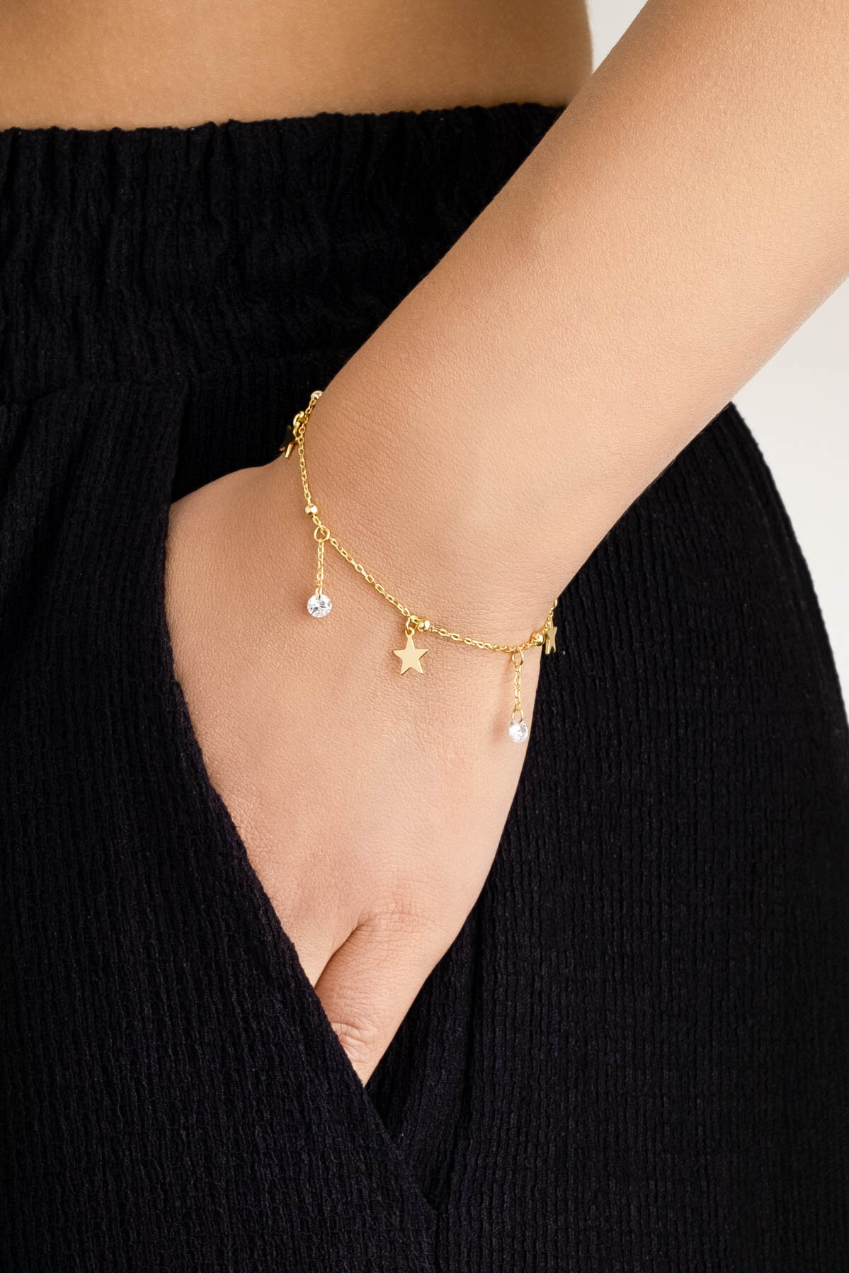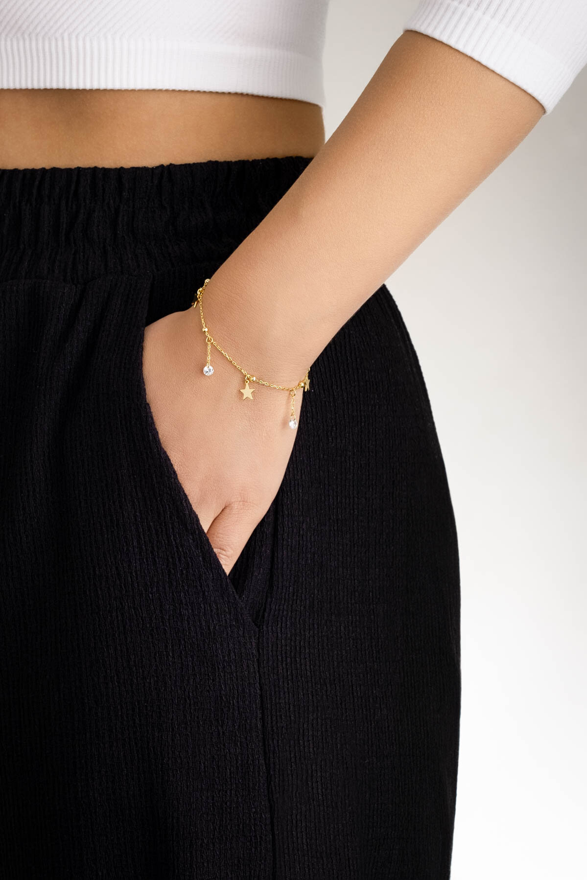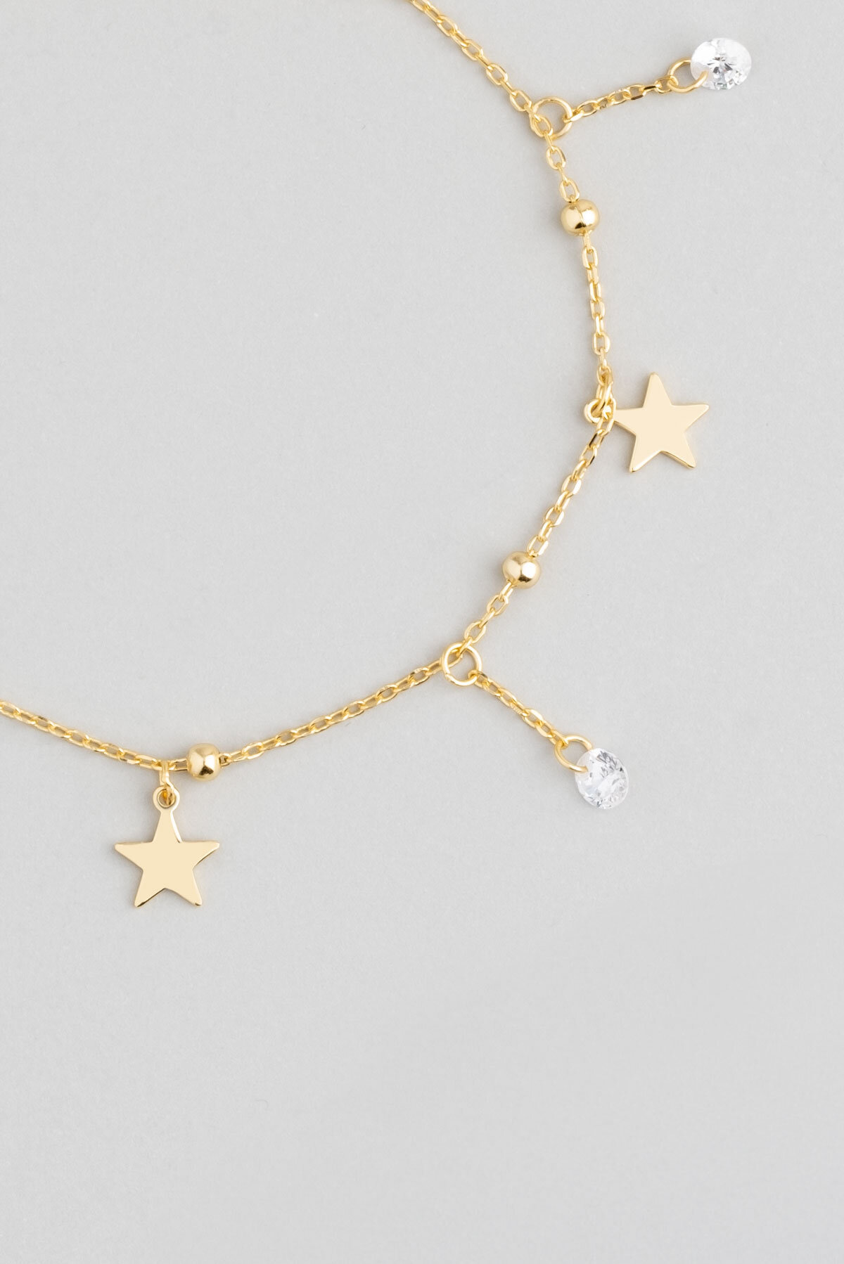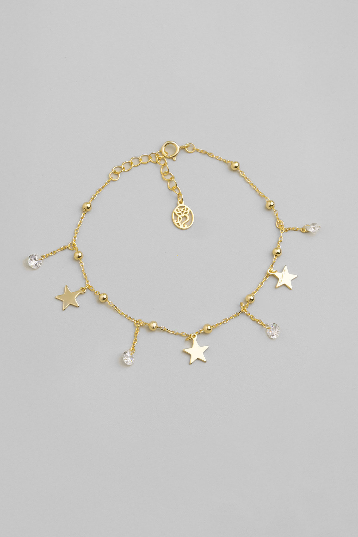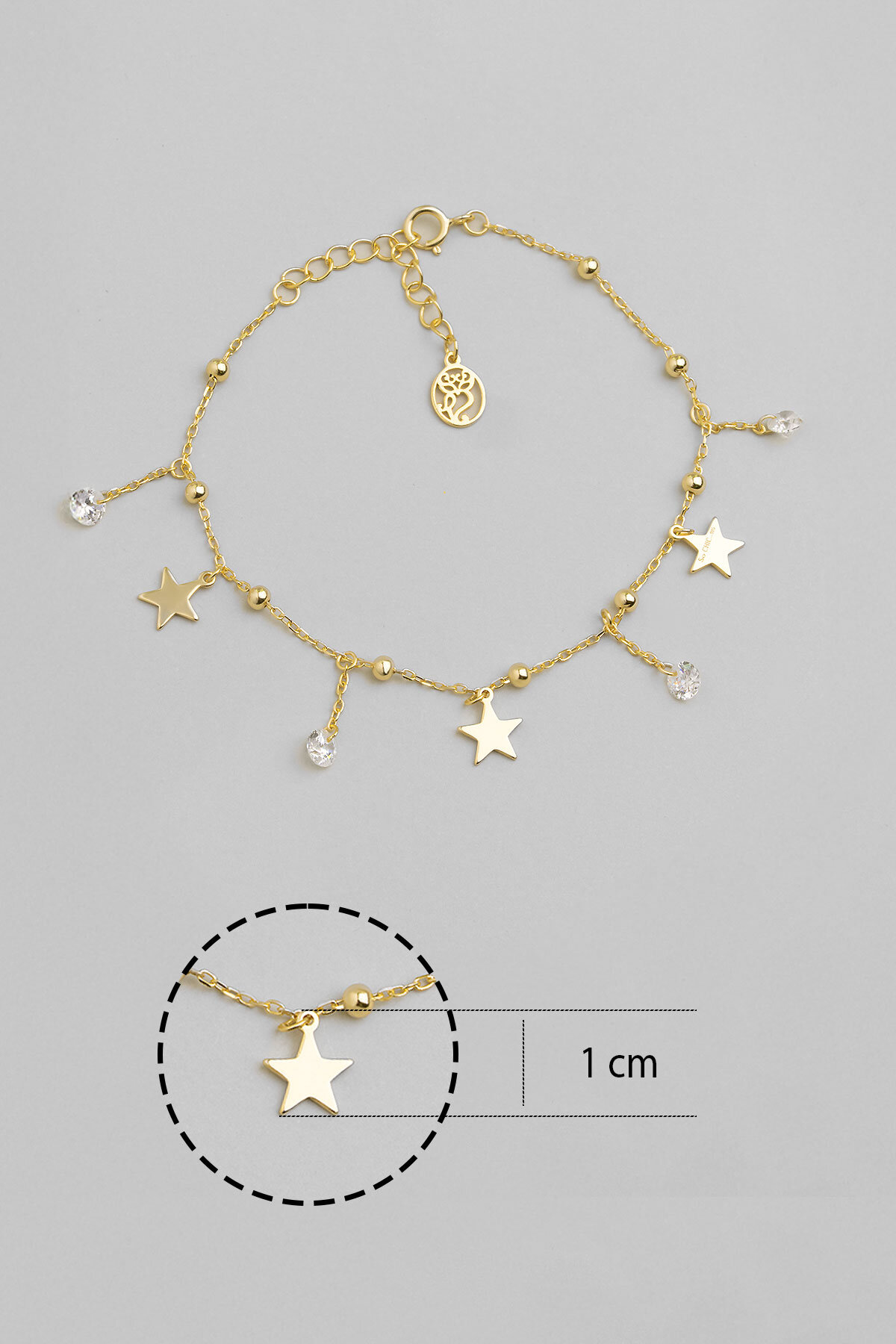 Yıldız Figürlü 18 Ayar Sarı Altın Kaplama Gümüş Minimal Bileklik