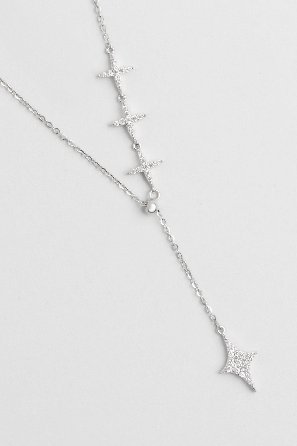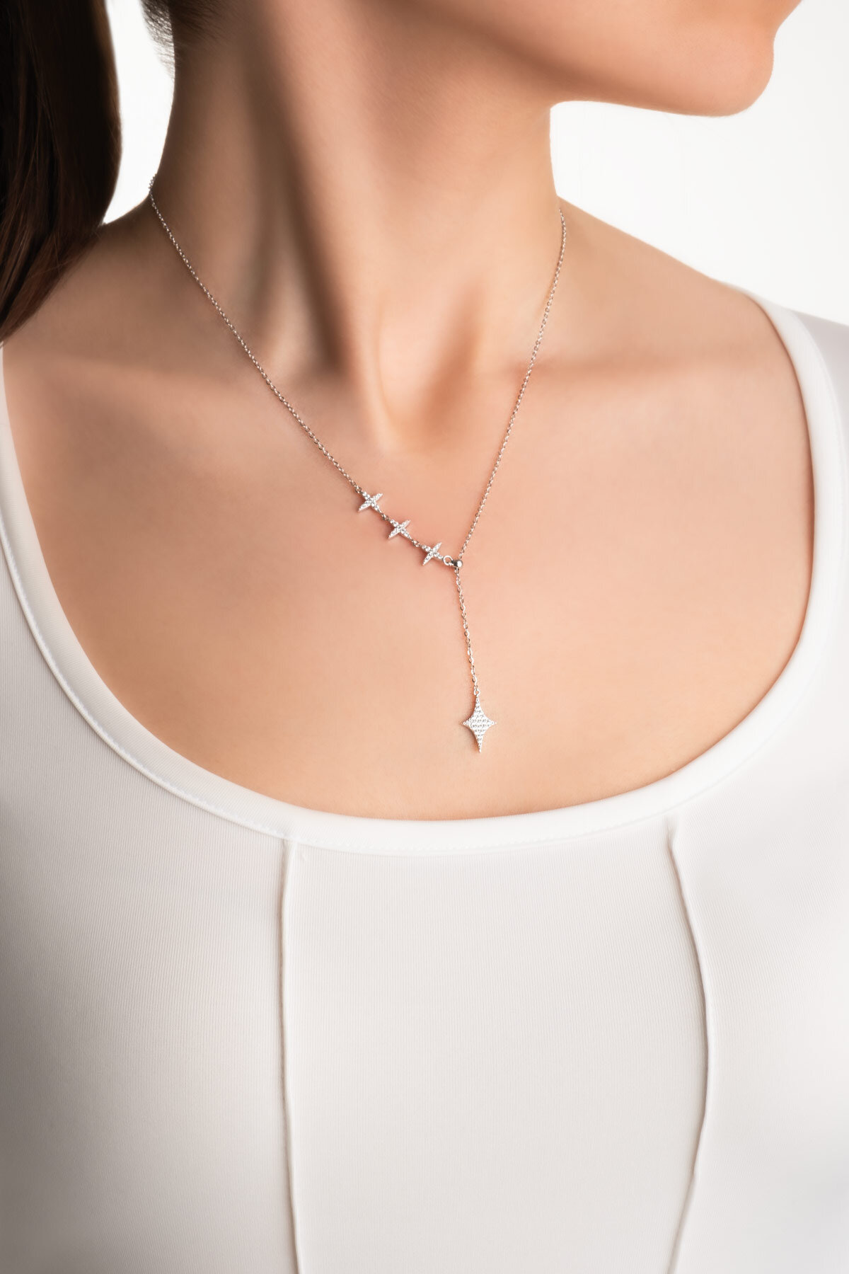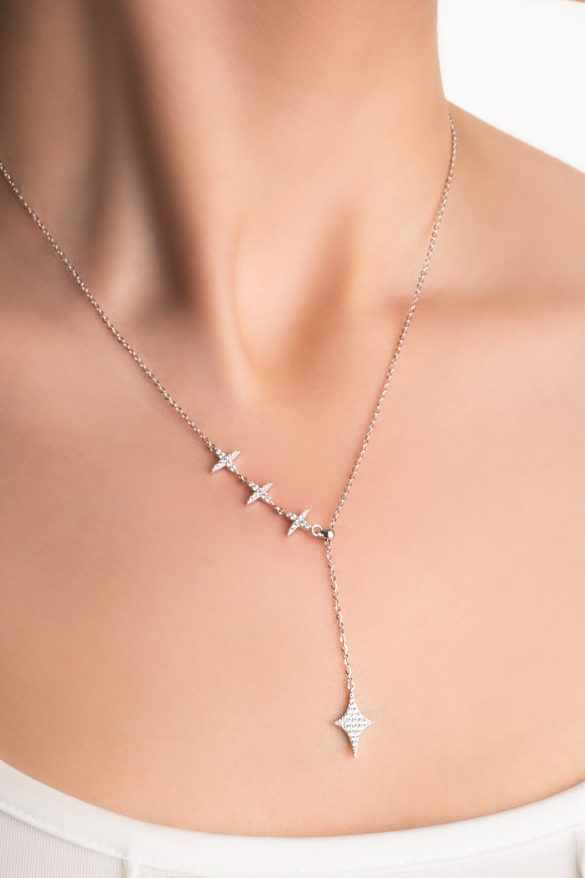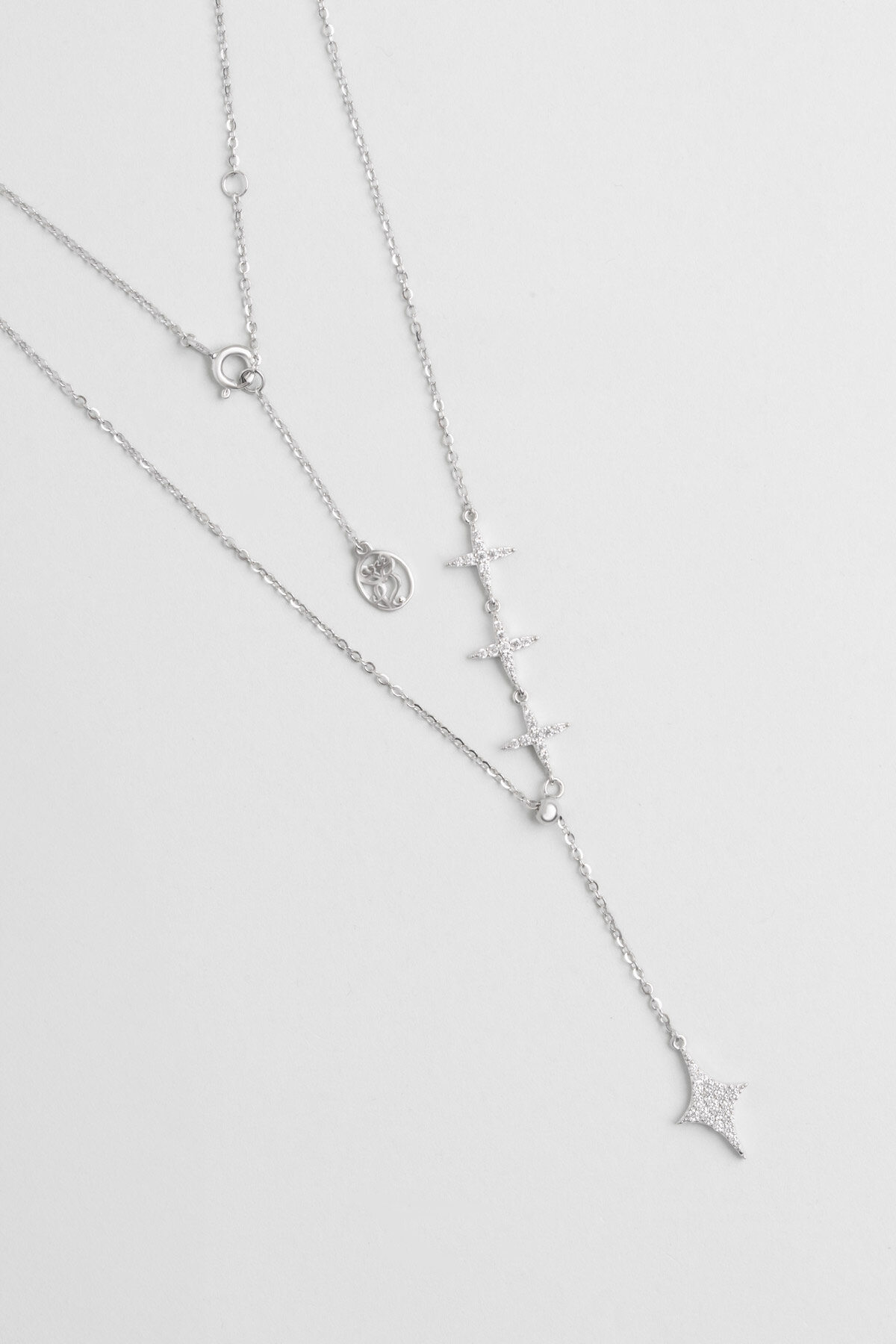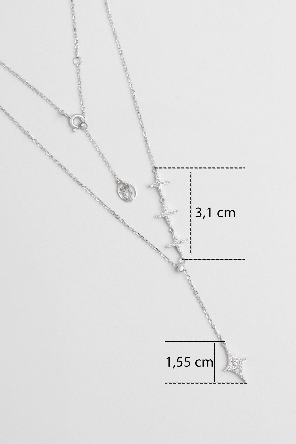 Yıldız Geçidi 18 Ayar Beyaz Altın Kaplama 45 Cm Gümüş Y Kolye