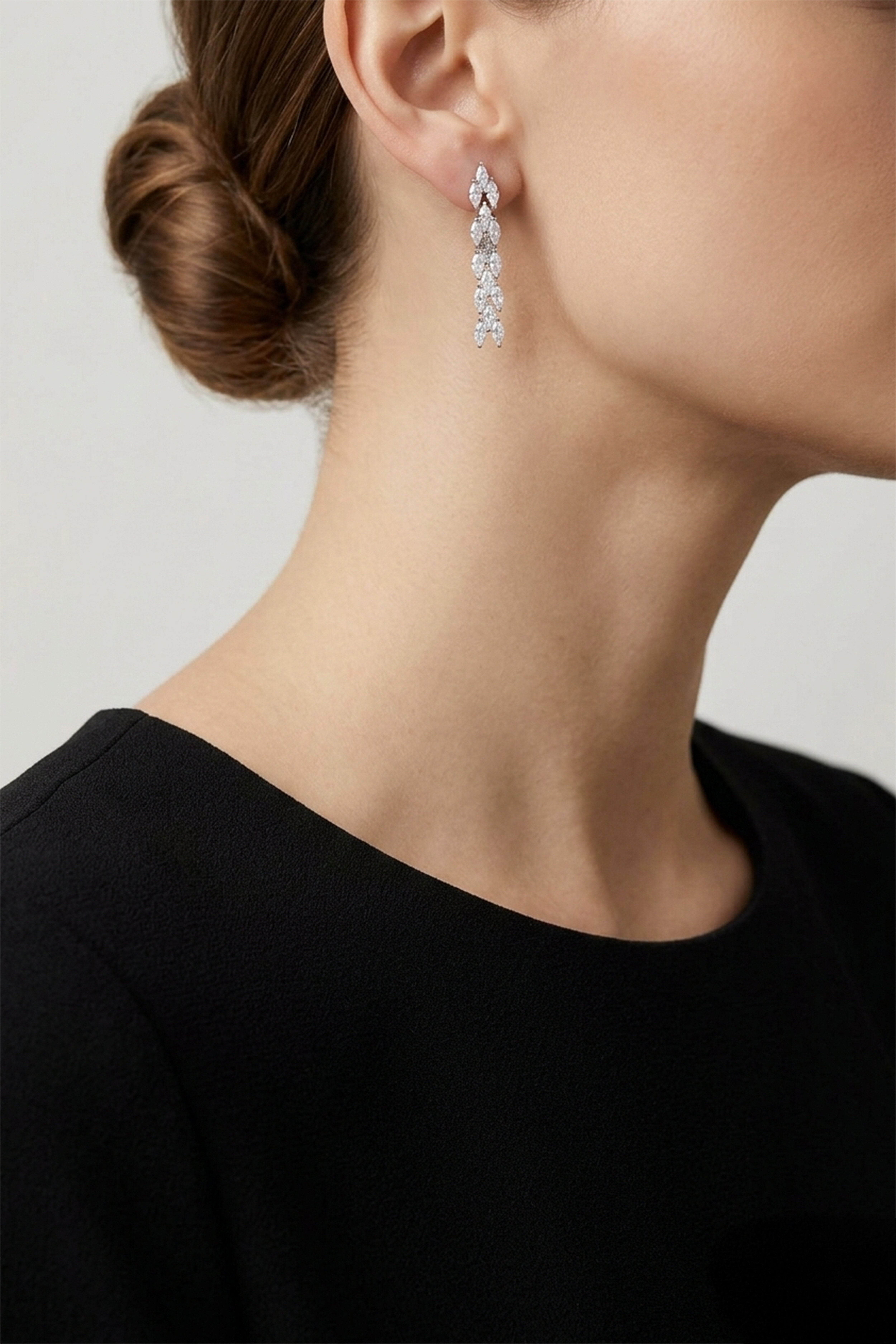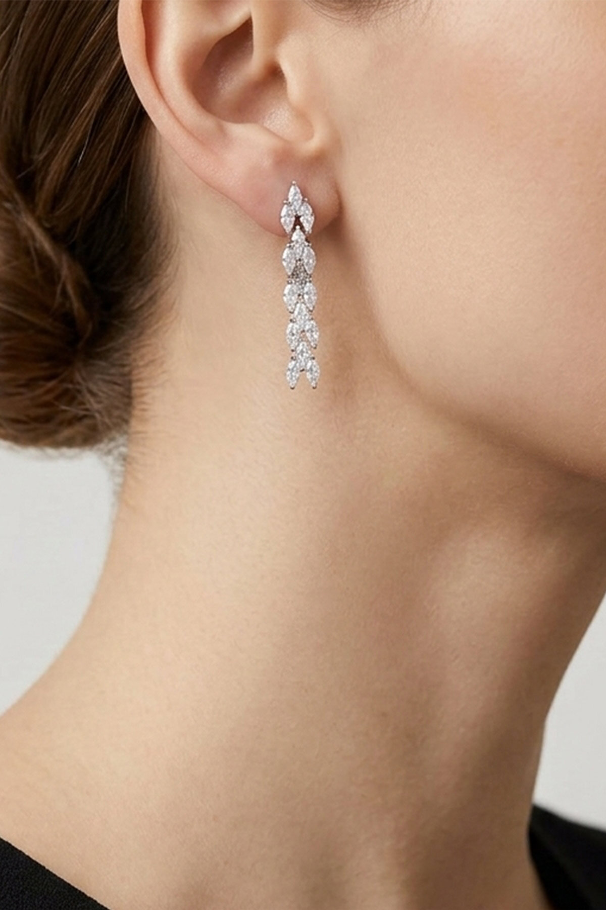 Yıldızlı Geceler 18 Ayar Beyaz Altın Kaplama Gümüş Sallantılı Küpe