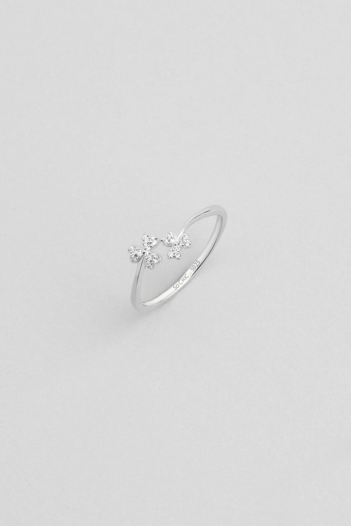 Yonca 18 Ayar Beyaz Altın Kaplama Ayarlanabilir Gümüş Çiçek Yüzük