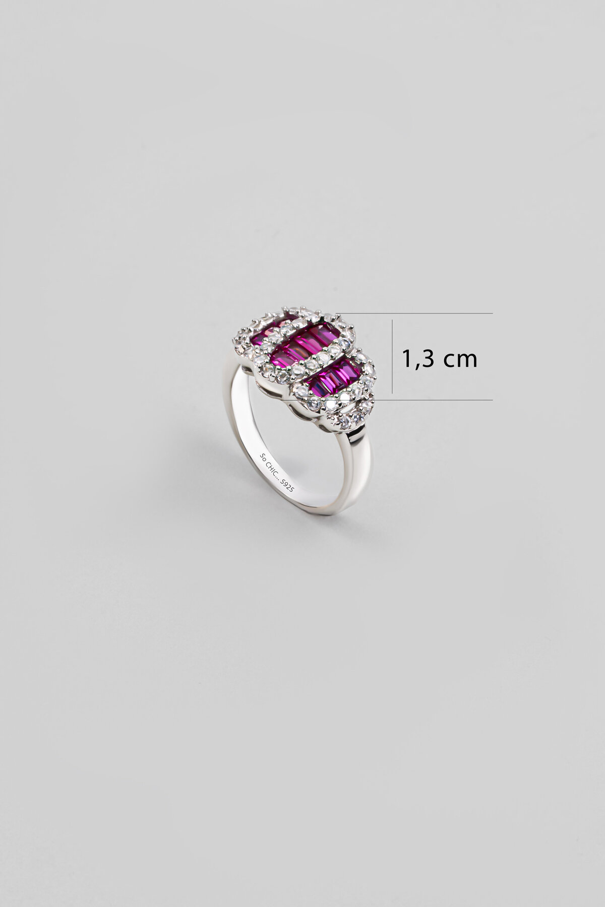Fuşya Taşlı Beyaz Altın Kaplama