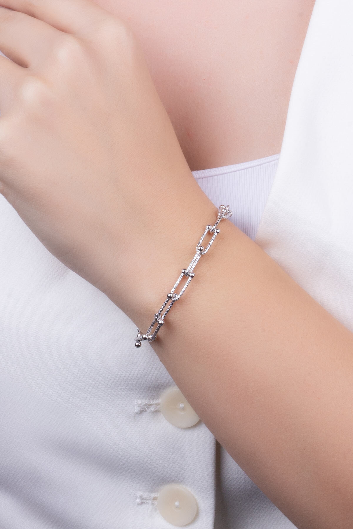 Zamansız İtalyan 18 Ayar Beyaz Altın Kaplama 19 Cm Gümüş Ataş Zincir Bileklik