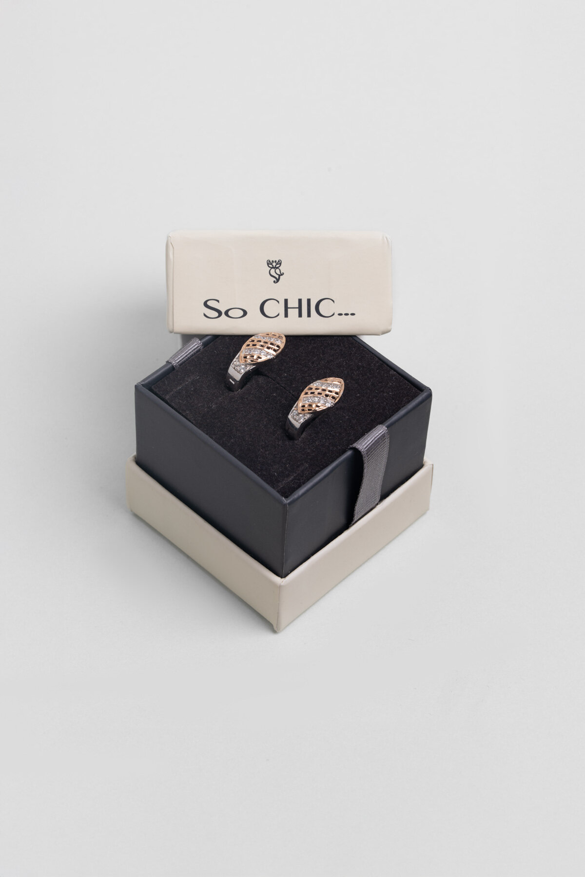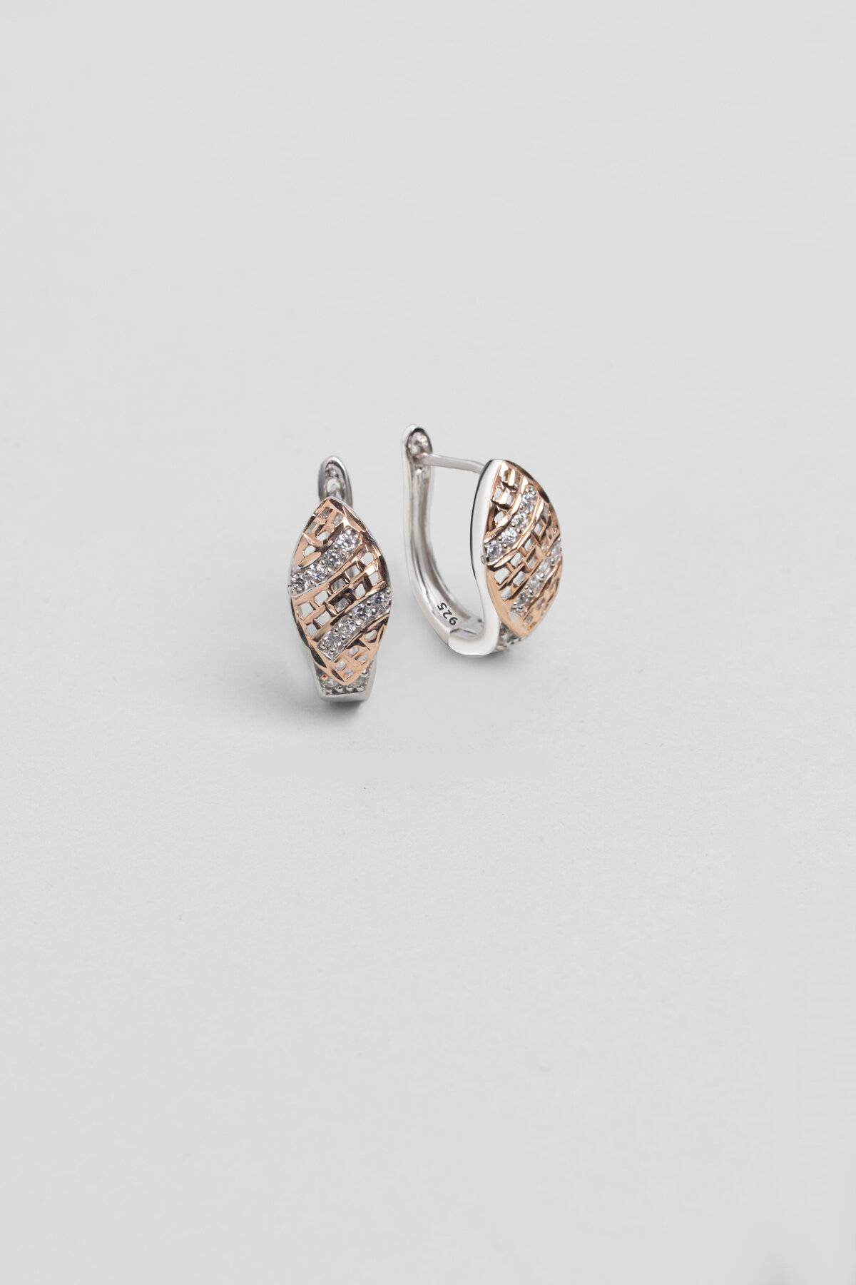 Zamansız Tasarım 18 Ayar Rose ve Beyaz Altın Kaplama Gümüş Küpe