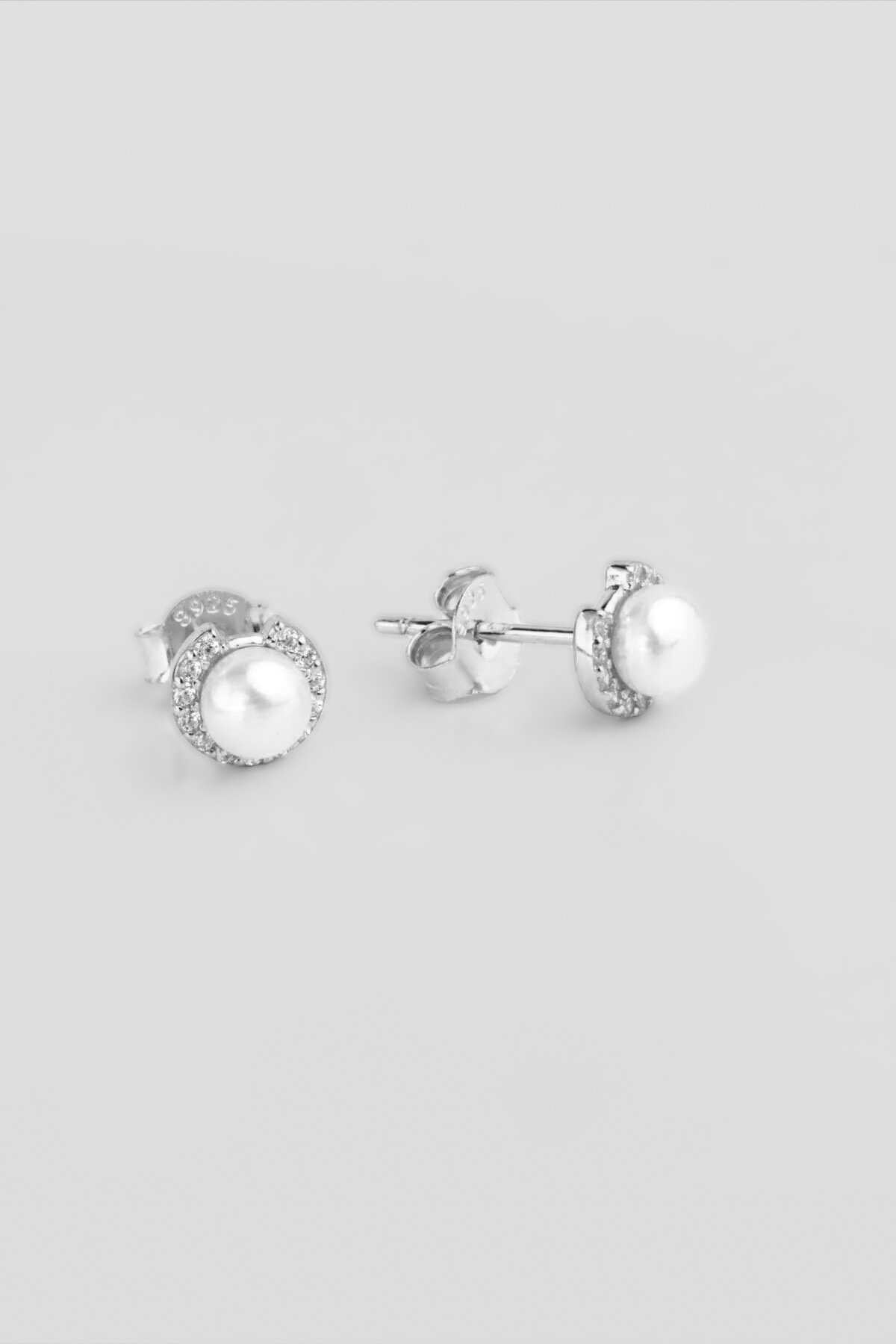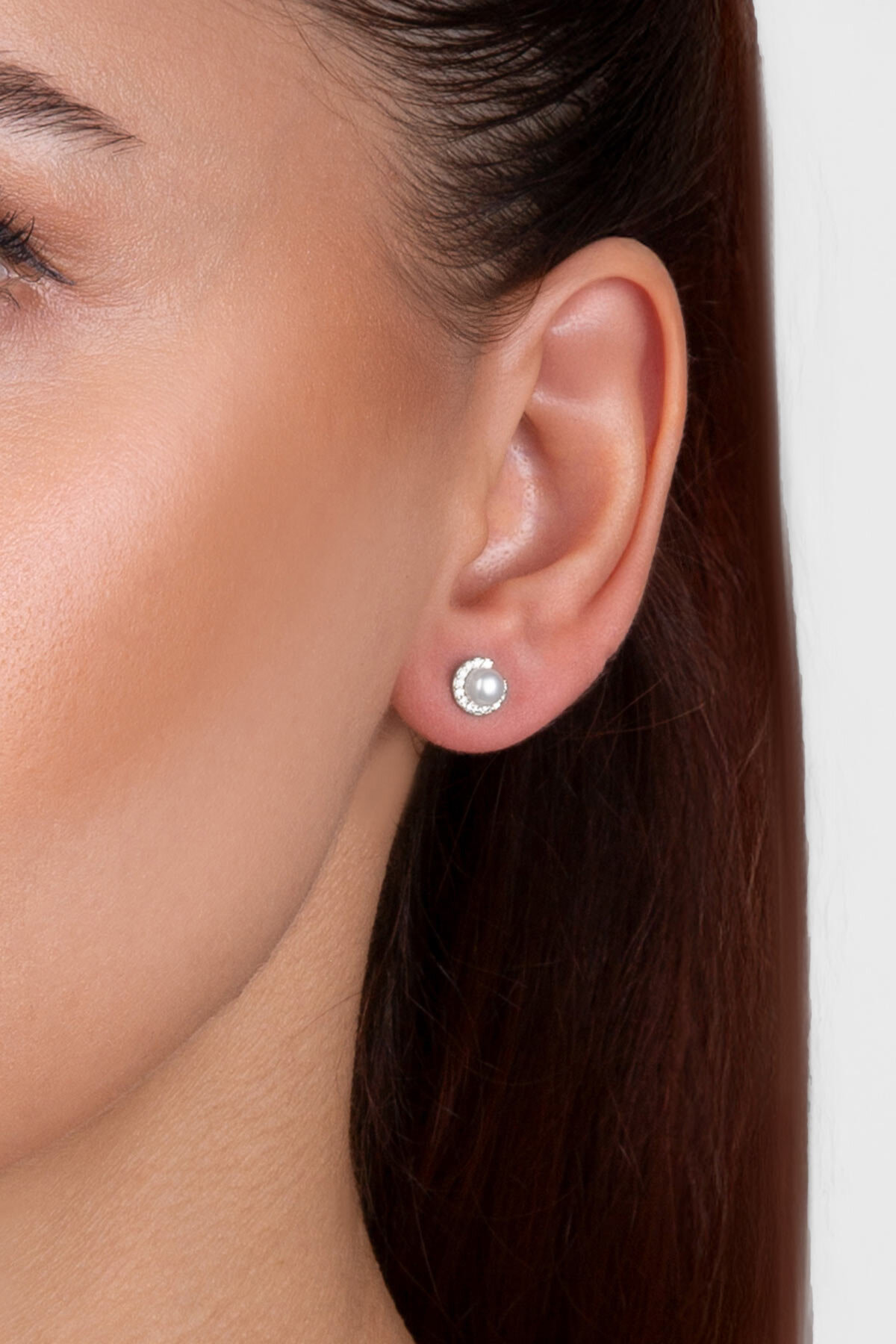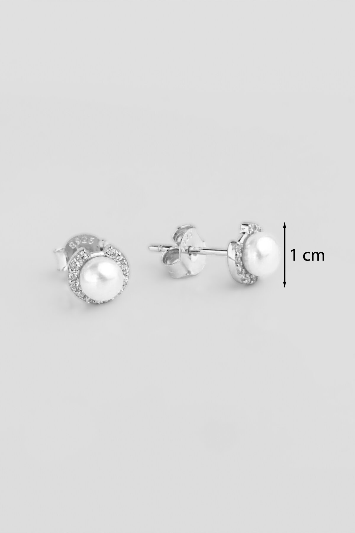 Zirkon Taş Detaylı 18 Ayar Beyaz Altın Kaplama Gümüş İnci Küpe