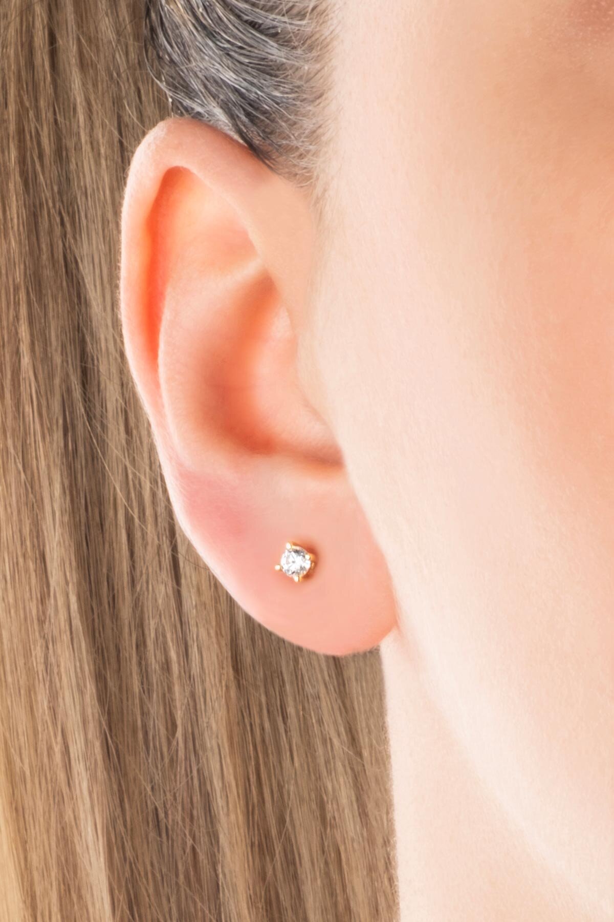 Zirkon Taşlı 3 mm 18 Ayar Sarı Altın Kaplama Gümüş Tektaş Küpe